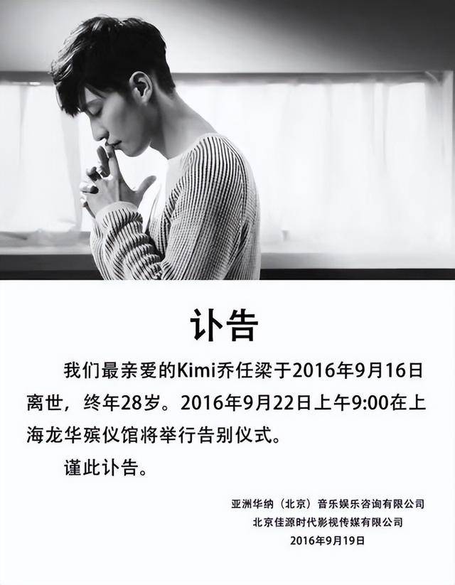 2016年9月16日,年仅28岁的乔任梁正在上海家中离世,当时警方第暂时间介入探问。